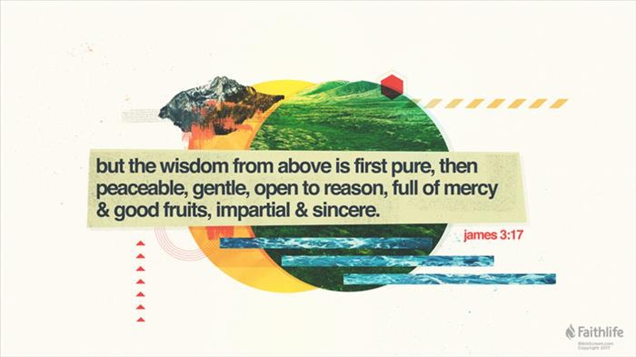 Addressing everyone with sincerity and generosity: But the wisdom from above is first of all pure. It is also peace loving, gentle at all times, and willing to yield to others. It is full of mercy and the fruit of good deeds. It shows no favoritism and is always sincere. (James 3:17 NLT)