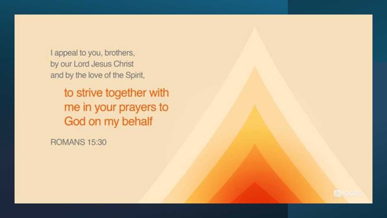 I urge you, brothers and sisters, by our Lord Jesus Christ and by the love of the Spirit, to join me in my struggle by praying to God for me. (Romans 15:30 NIV)