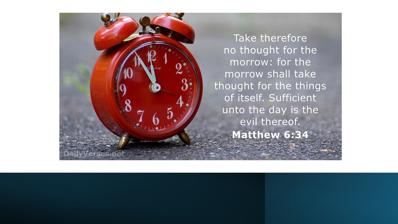 So don’t worry about tomorrow. Each day has enough trouble of its own. Tomorrow will have its own worries. (Matthew 6:34 ERV)