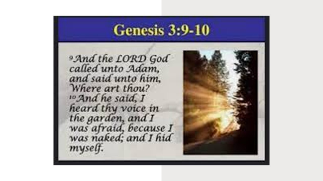 The Lord God called to the man and said, “Where are you?” The man said, “I heard you walking in the garden, and I was afraid. I was naked, so I hid.” (Genesis 3:9-10 ERV)