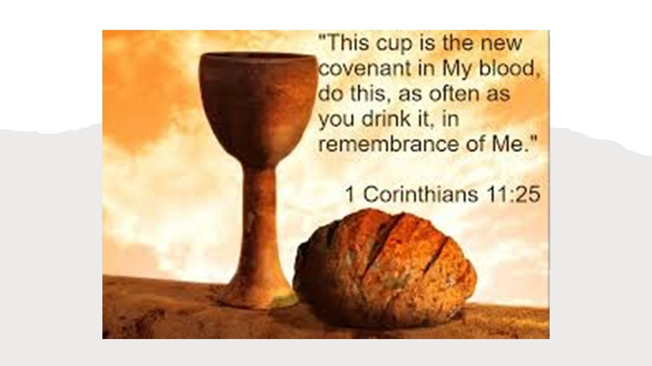 The Lord Jesus, on the night he was betrayed, took bread, and when he had given thanks, he broke it and said, “This is my body, which is for you; do this in remembrance of me.” In the same way, after supper he took the cup, saying, “This cup is the new covenant in my blood; do this, whenever you drink it, in remembrance of me.” For whenever you eat this bread and drink this cup, you proclaim the Lord’s death until he comes. (1 Corinthians 11:23b-26 NIV).