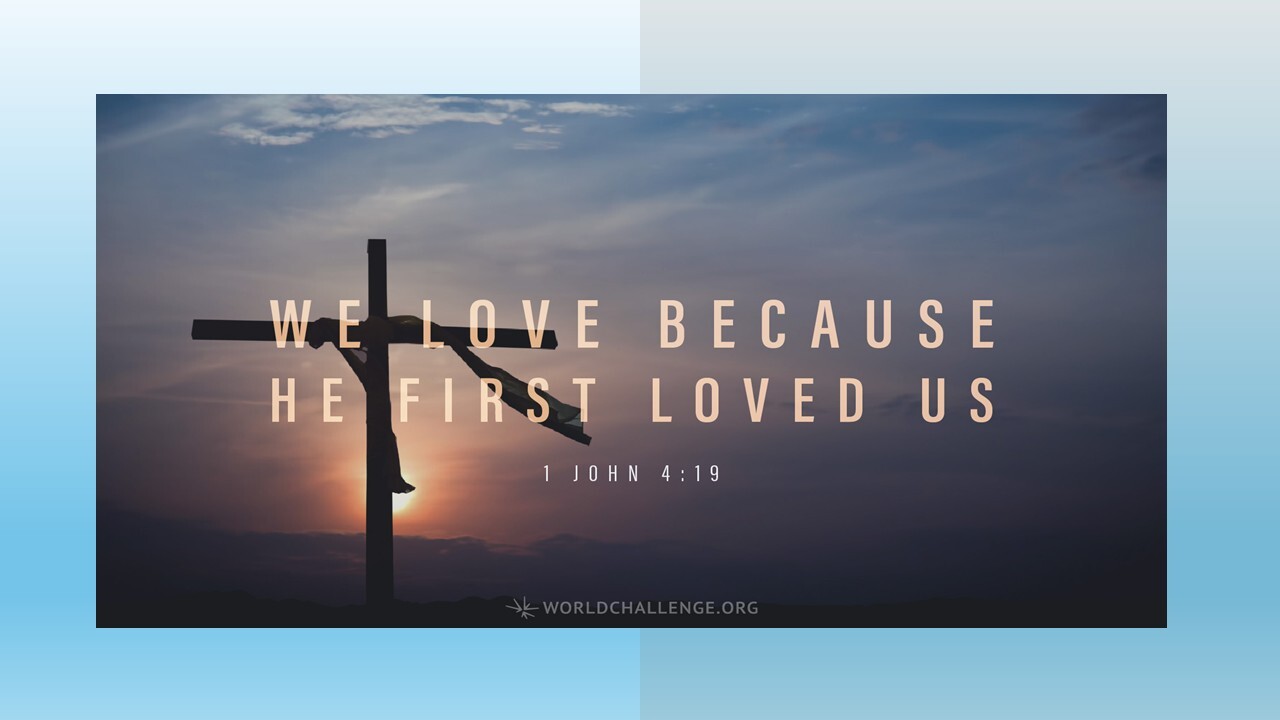 We love each other because he loved us first. (1 John 4:19 NLT)