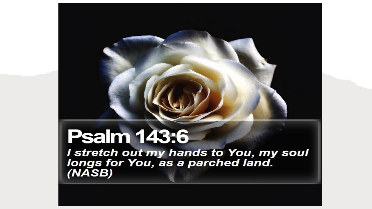 Hear my prayer, O Lord; listen to my plea! Answer me because you are faithful and righteous. Don’t put your servant on trial, for no one is innocent before you. My enemy has chased me. He has knocked me to the ground and forces me to live in darkness like those in the grave. I am losing all hope; I am paralyzed with fear. I remember the days of old. I ponder all your great works and think about what you have done. I lift my hands to you in prayer. I thirst for you as parched land thirsts for rain. (Psalm 143:1-6 NLT)