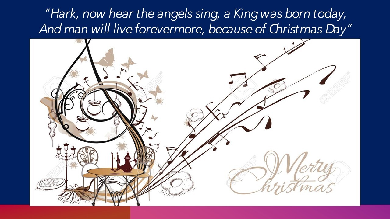 “Long time ago in Bethlehem, so the Holy Bible said, Mary's boy child Jesus Christ, was born on Christmas Day. Hark, now hear the angels sing, a King was born today, And man will live for evermore, because of Christmas Day …. Now Joseph and his wife, Mary, came to Bethlehem that night, They found no place to bear her child, not a single room was in sight. By and by they found a little nook in a stable all forlorn, And in a manger cold and dark, Mary's little boy child was born.”