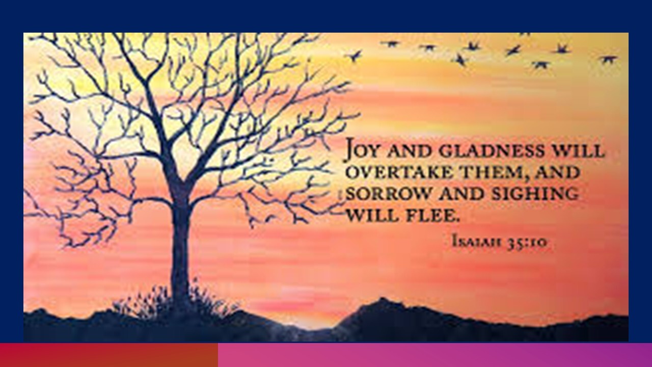 Those who have been ransomed by the Lord will return. They will enter Jerusalem singing, crowned with everlasting joy. Sorrow and mourning will disappear, and they will be filled with joy and gladness. (Isaiah 35:10 NLT)