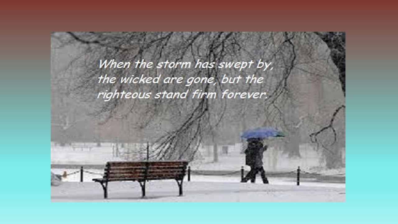 When the storm has swept by, the wicked are gone, but the righteous stand firm forever. (Proverbs 10:25 NIV)