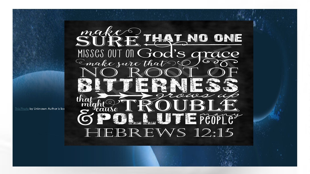 See to it that no one misses the grace of God and that no bitter root grows up to cause trouble and defile many. (Hebrews 12:15 NIV)