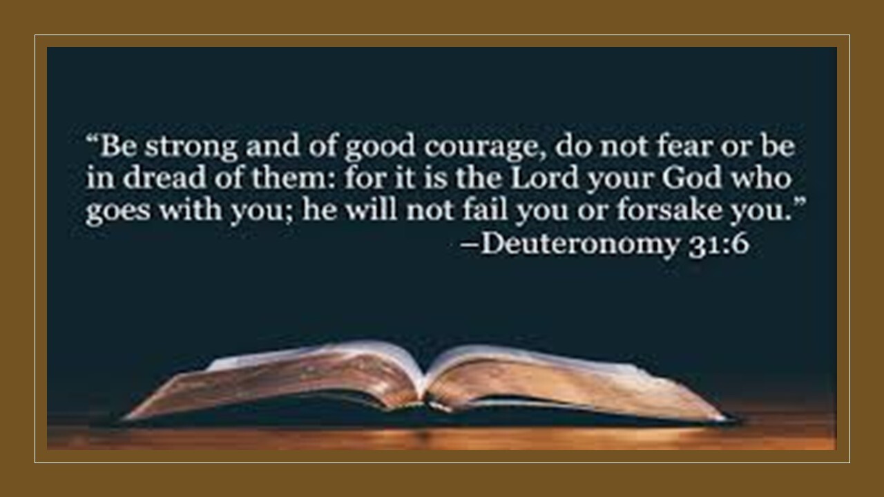 Be strong and courageous. Do not be afraid or terrified because of them, for the Lord your God goes with you; he will never leave you nor forsake you. (Deuteronomy 31:6 NIV)