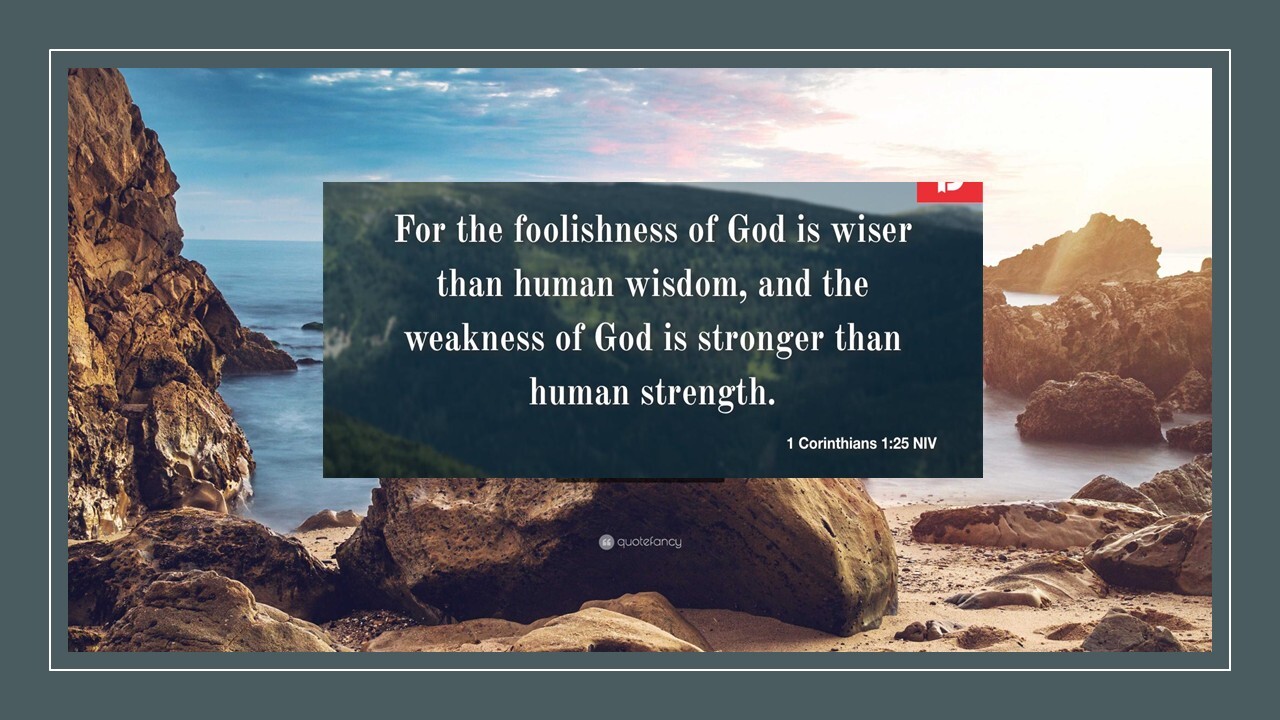 Christ is the mighty power of God and the wisdom of God. This “foolish” plan of God is far wiser than the wisest of human plans, and God’s weakness is far stronger than the greatest of human strength (1 Corinthians 1:24b-25 NLT)